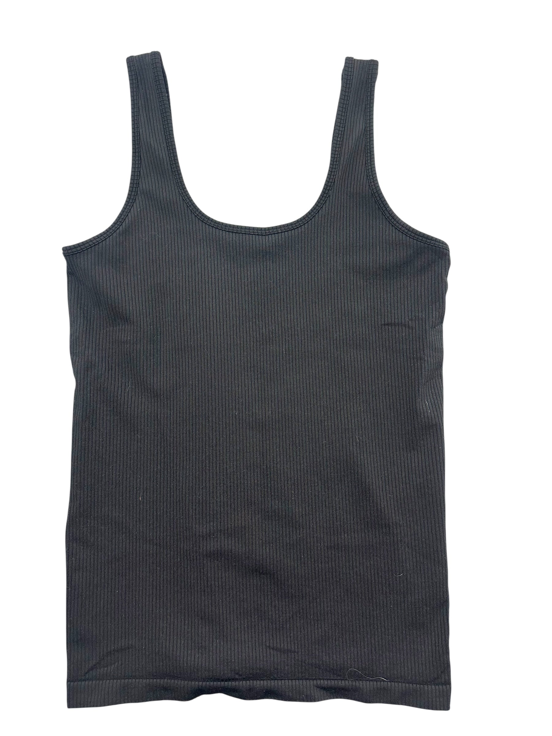 Crafted from a soft, ribbed fabric, this black tank top offers a form-fitting silhouette that enhances comfort and style. Its versatile design makes it an essential layering piece or a stand-alone top for warm weather. Durable and breathable, it supports all-day wear while maintaining shape, making it a reliable addition to any wardrobe.