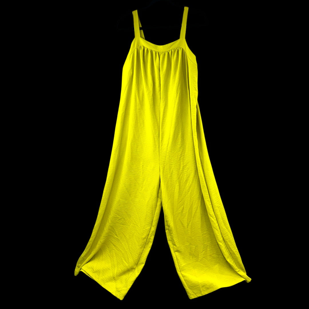 Make a statement with this vibrant yellow wide-leg jumpsuit, designed for effortless style and comfort. Featuring adjustable spaghetti straps and a relaxed silhouette, the flowing palazzo pants create a flattering, breezy look perfect for warm weather. Crafted from breathable fabric with a subtle textured finish, this versatile piece transitions seamlessly from casual daytime wear to evening occasions. Whether you're heading to the beach, a vacation, or a social gathering, this jumpsuit delivers both confidence and ease in one polished package.