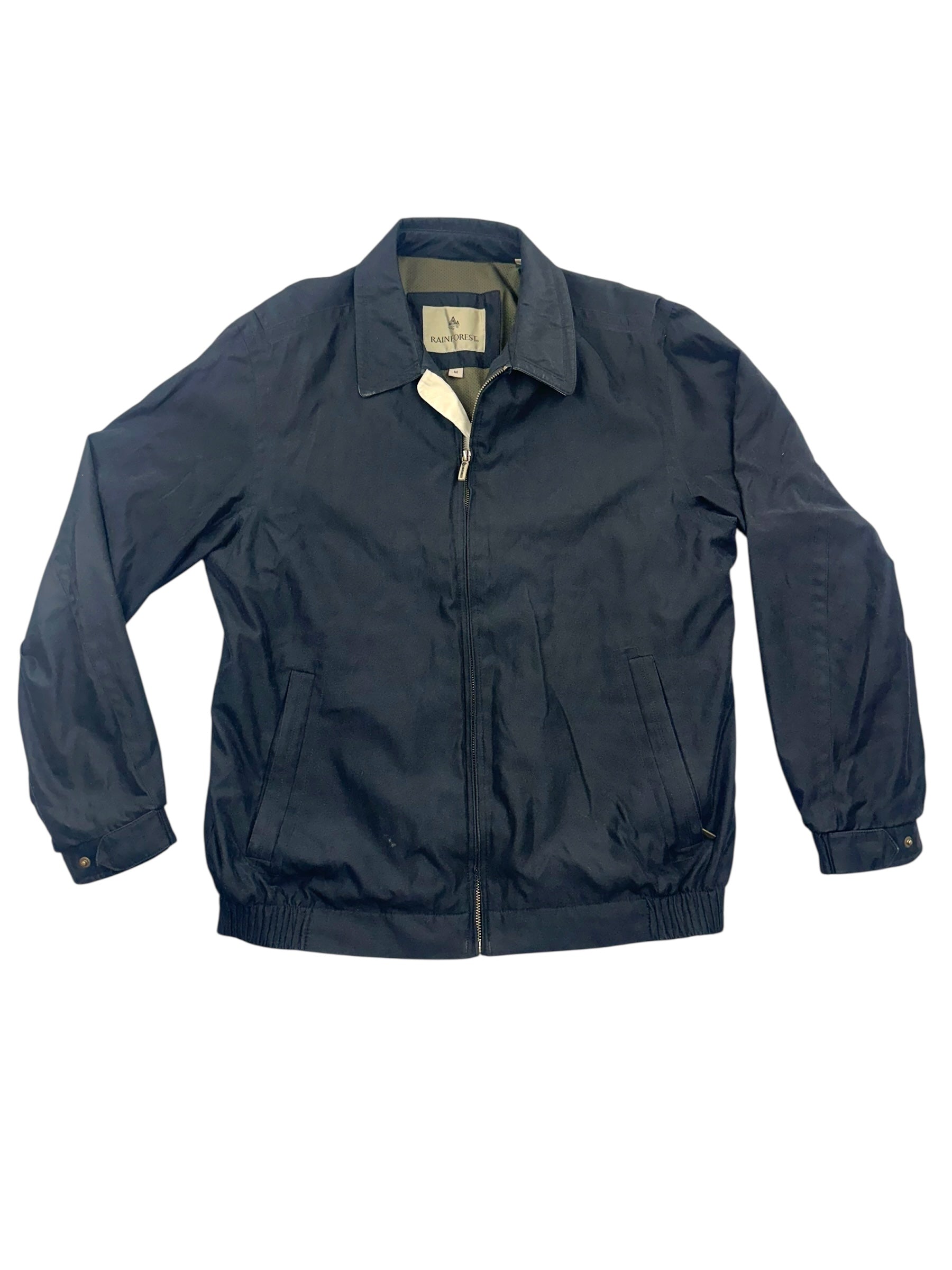 Engineered for unpredictable weather, this Rainforest men's raincoat combines technical performance with refined style. The navy blue cotton blend fabric offers breathable protection without sacrificing comfort, making it equally suited for golf outings or everyday wear. Designed with a structured fit and quality construction, this jacket delivers reliable water resistance while maintaining the natural breathability of cotton. A versatile layering piece that transitions seamlessly from course to casual settings.
