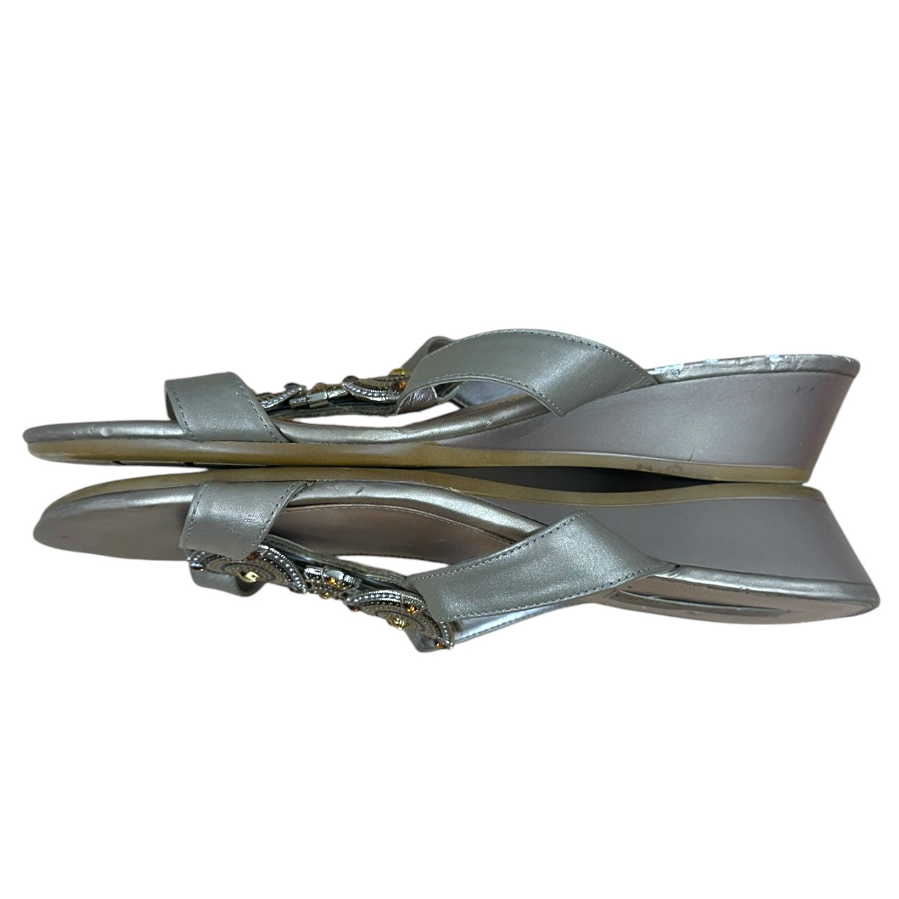 Y2K Bandolino Champagne Gold Beaded Slide Sandals